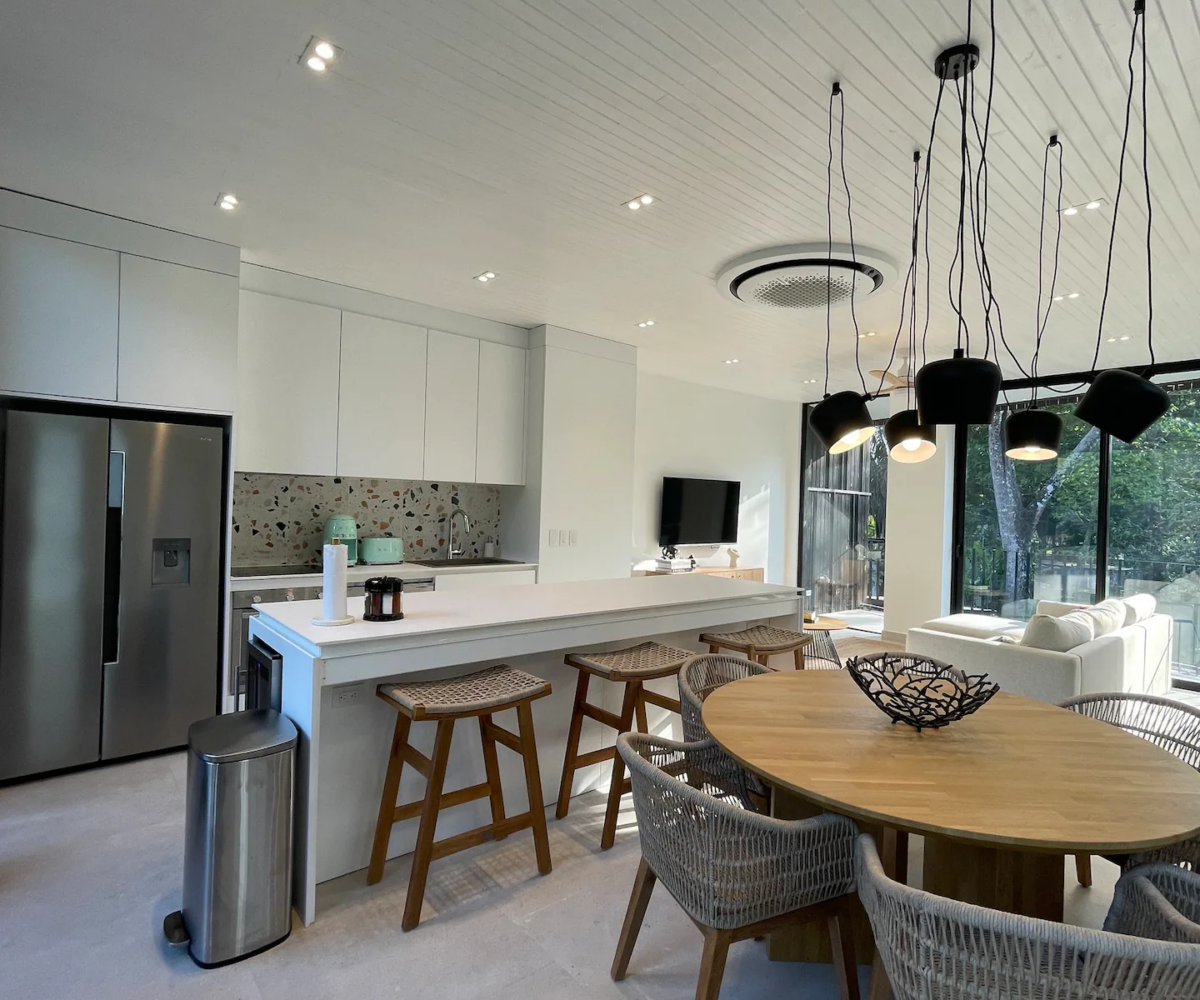 This stunning two-bedroom home, accompanied by a private studio apartment, is ideally situated on a peaceful residential street, just a five-minute drive from the white-sand surfing beaches of Santa Teresa. Main House The main house features two bedrooms and one bathroom, complemented by an open-concept living area and a fully equipped kitchen. Step outside to […]