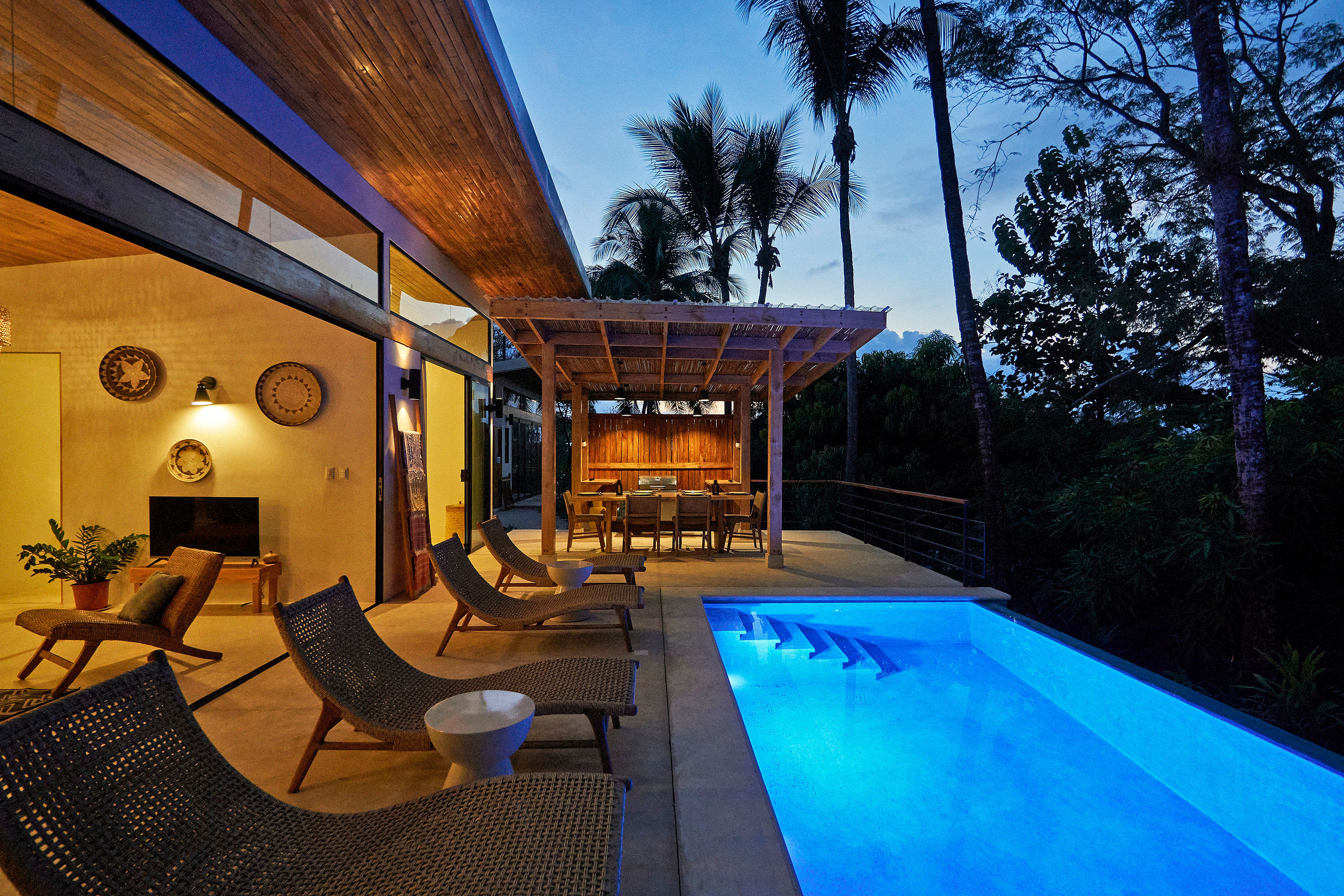 Set on a generous 1,374.82 square meter lot, Casa del Árbol is a private multi-unit residential property located in the Santiago area, just minutes from Playa Manzanillo and Playa Hermosa, and approximately 15 minutes from the surf town of Santa Teresa. Built in 2022, the property is surrounded by mature trees and palms, offering a […]