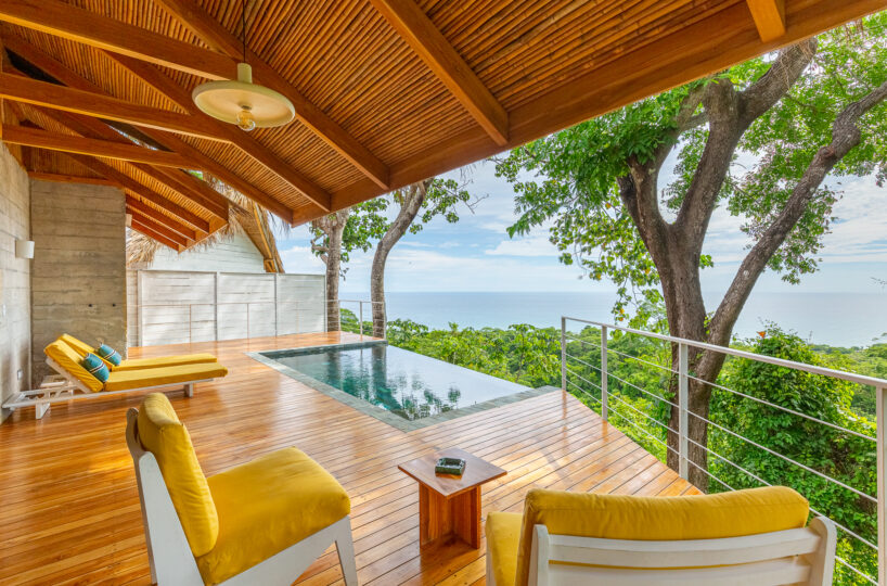 This enchanting two-bedroom home is nestled in the tropical paradise of Mal Pais. Boasting incredible ocean views, this home is a haven for those seeking a serene escape. This villa features two bedrooms, two bathrooms, and a large deck complete with an infinity pool.