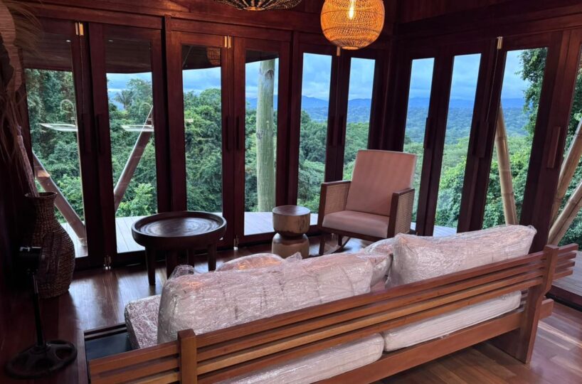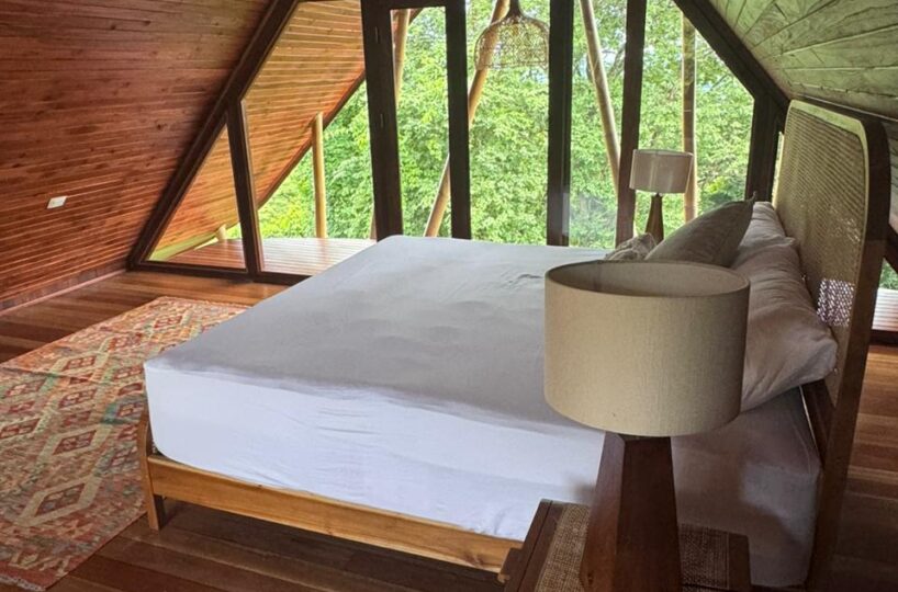 The layout offers a cozy upstairs bedroom, while the ground floor includes a bathroom, kitchen, and living room designed for comfort and functionality. Step onto the expansive balcony to enjoy breathtaking 360º views of the verdant valley—perfect for relaxing, entertaining, or simply taking in the sights and sounds of the surrounding wildlife, including frequent visits from playful monkeys.