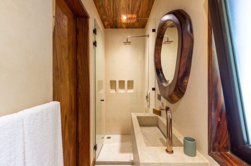 Ascending to the upper level reveals three opulent ocean-view suites, each featuring a private en-suite bathroom for enhanced comfort and privacy. Every room is thoughtfully outfitted with air conditioning, promising restful nights.