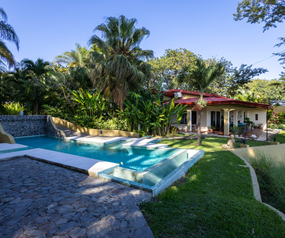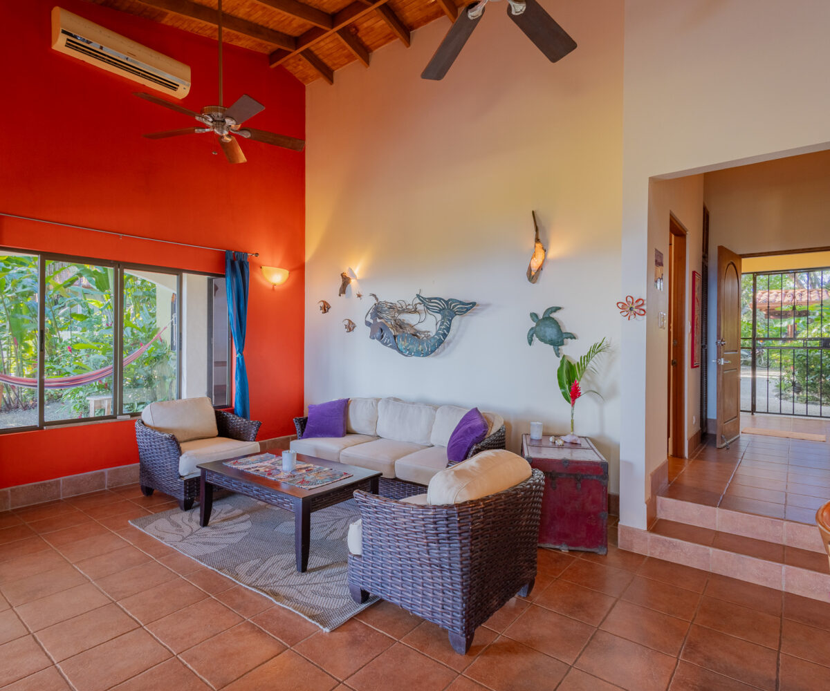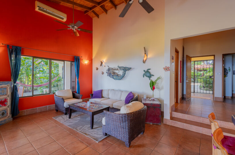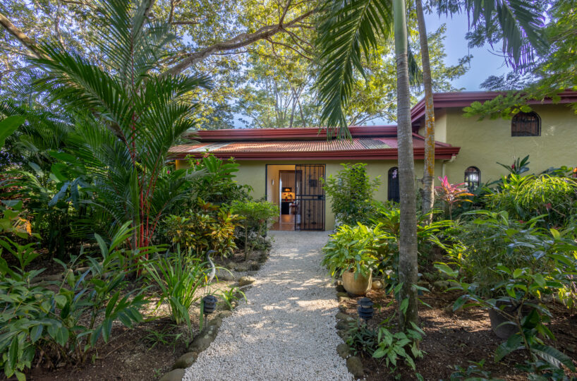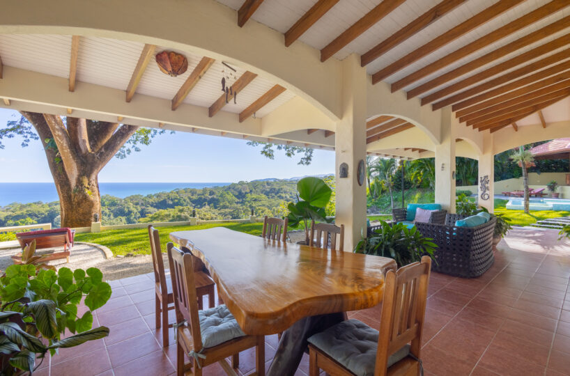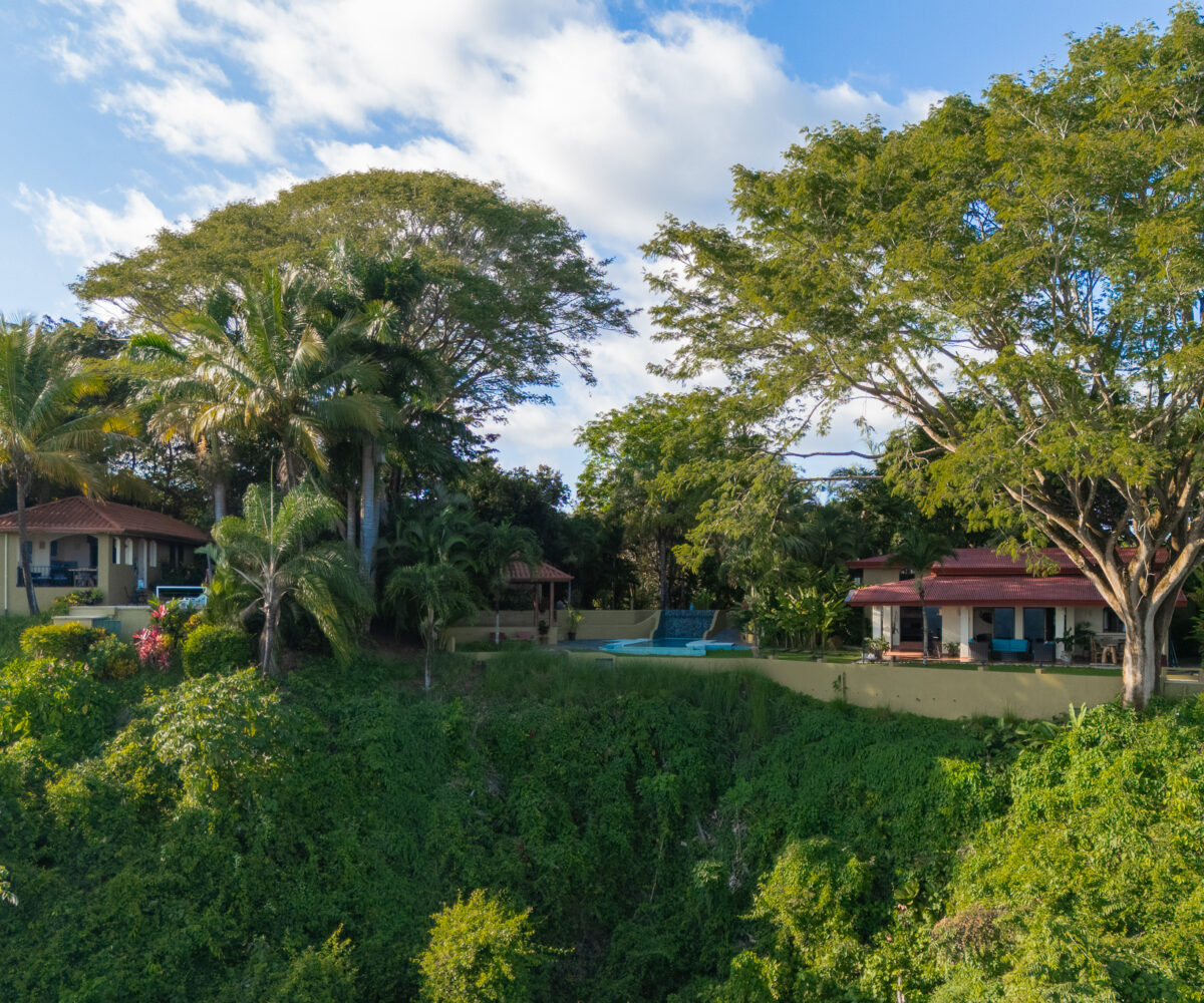 Set high above the vibrant coastal town of Montezuma, this remarkable estate commands panoramic views of the Pacific Ocean framed by lush jungle landscape. Mature tropical gardens surround the property, offering exceptional privacy and a serene, retreat-like atmosphere infused with natural beauty.