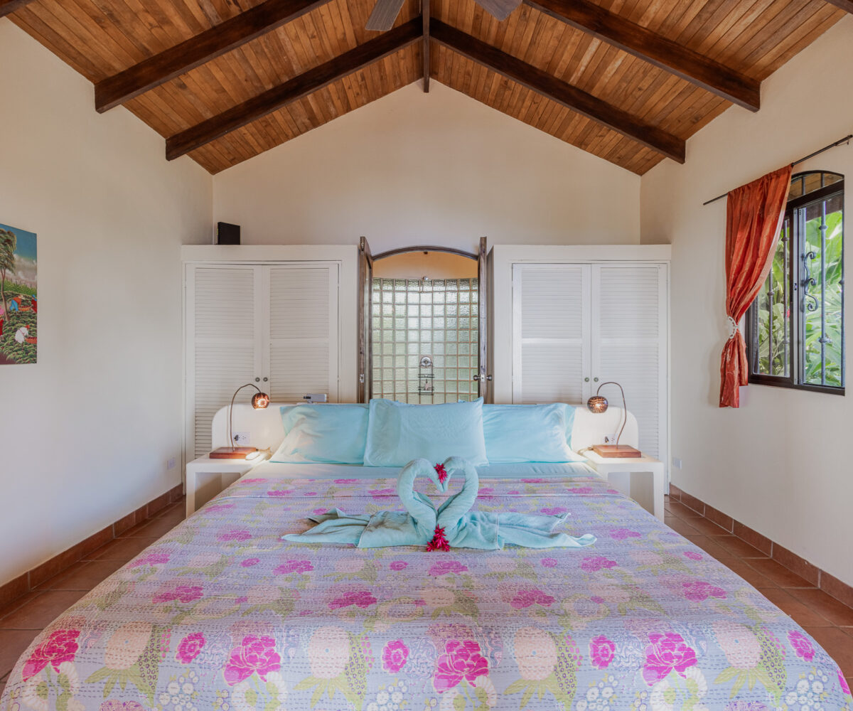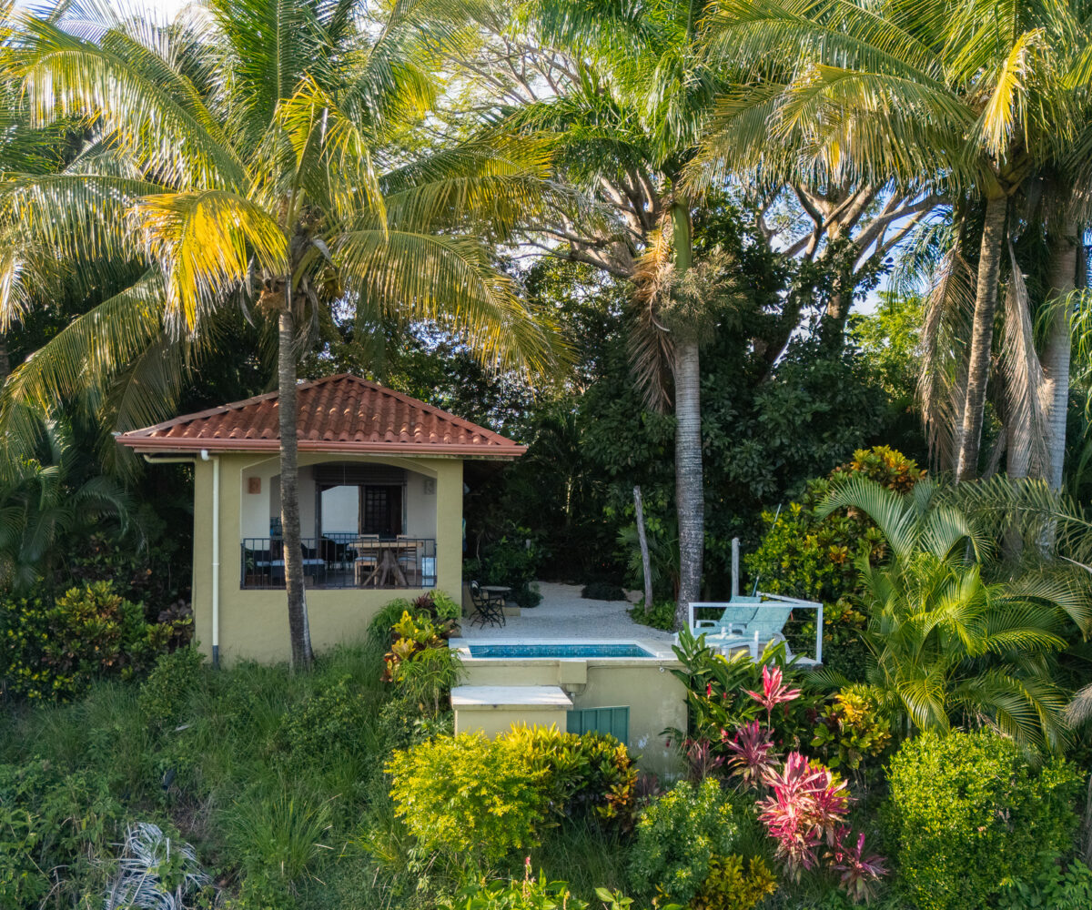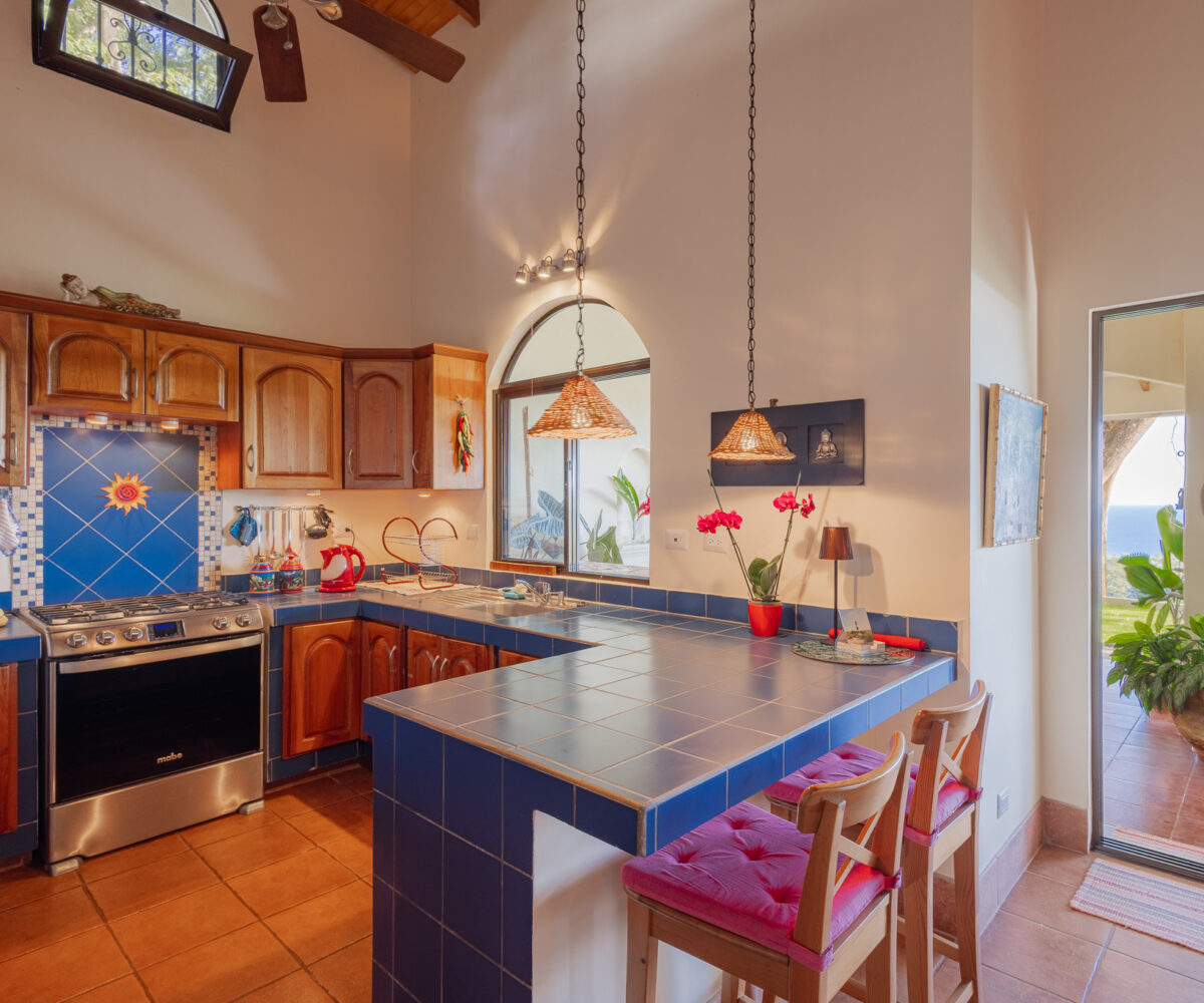Higher on the property, a private one-bedroom guest casita provides an intimate escape, complete with a spacious bedroom and bathroom, an open-air kitchen and living area, and sweeping views. A plunge pool with an adjoining view deck offers the perfect place to cool off after a day at the beach.