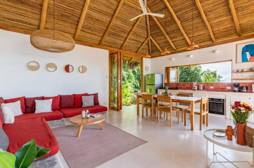This turn-key home is presently a vacation rental home. Sold fully furnished, new owners could continue with the current vacation rental home business or move-in to make this their permanent home. Located in Malpais, it provides the best of tropical living with proximity to town and surf while being located in a serene and tranquility residential area. Embrace the Pura Vida lifestyle in this charming ocean view home, surrounded by Costa Rica’s natural beauty. Contact us today for more information or to schedule a viewing.
