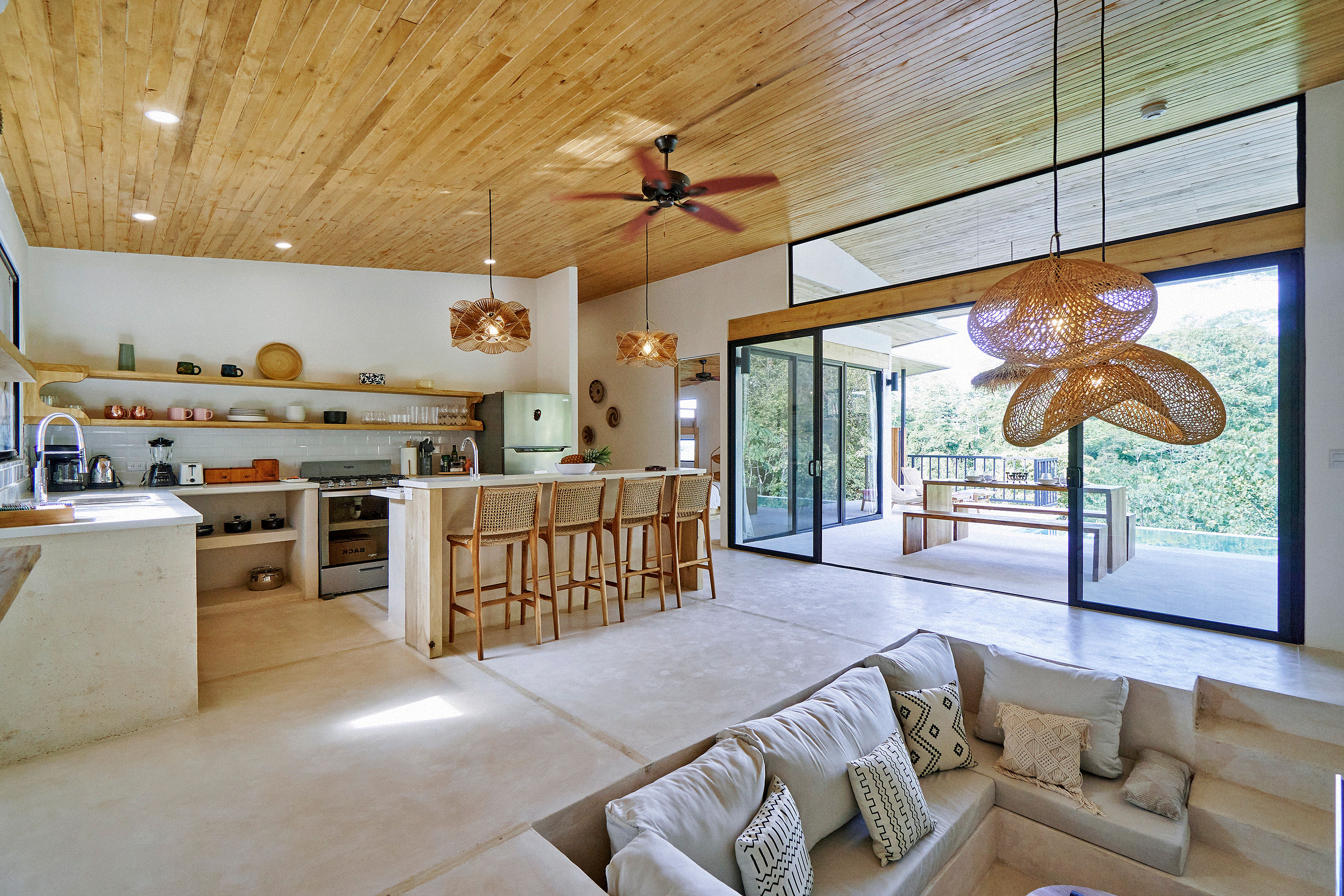 This bright, stylish three-bedroom home showcases a tropical modern design that harmonizes beautifully with its lush surroundings and sweeping mountain and ocean vistas. Each of the three suites offers a king-size bed, en-suite bathroom, and a private ocean-view deck, fully equipped for comfort. The primary suite boasts a walk-in closet, double vanity, shower, and private […]